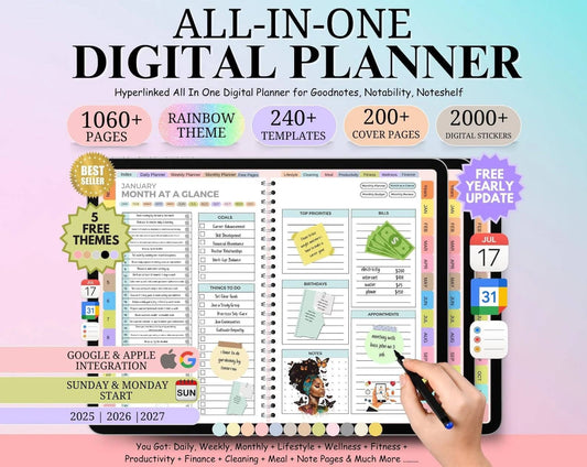 All-in-One Digital Planner 2025, 2026, 2027 – Goodnotes Planner, Apple Google Calendar + Bonus 50+ Templants planners